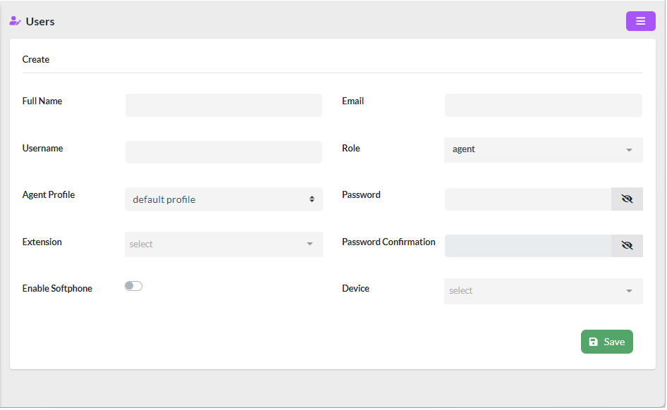 - Role, by selecting “agent” this user becomes an Agent, any other role you choose is administrative.