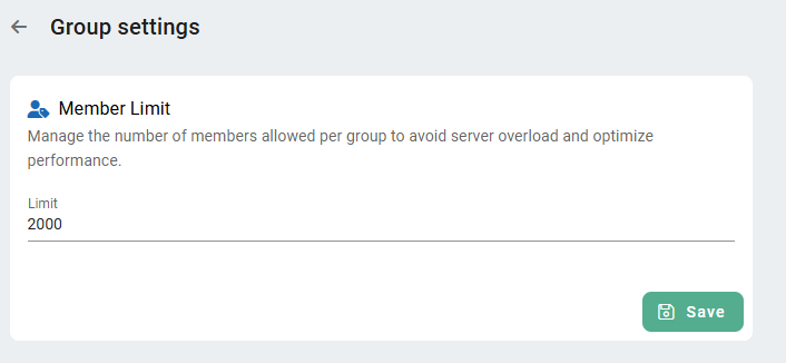 Administrators can set a maximum number of members allowed per group to prevent server overload and optimize performance.