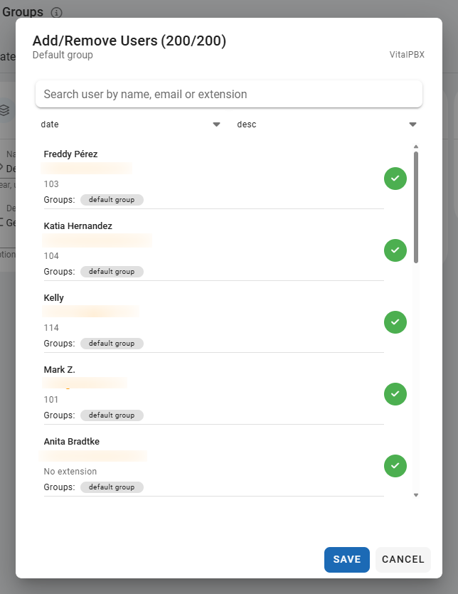 Tip: Groups are used for chat visibility, contact organization, and permission segmentation. For example, users in the same group can message each other directly in VitXi.