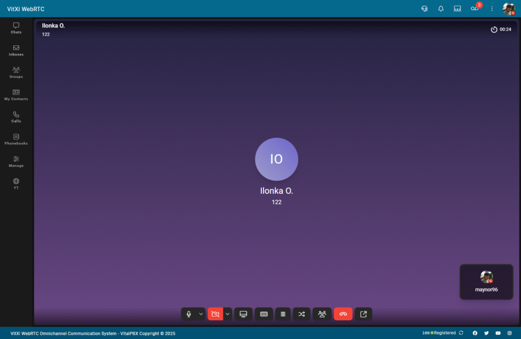 The Call Layout in VitXi WebRTC provides users with a modern, intuitive interface for managing audio and video calls directly from their browser.