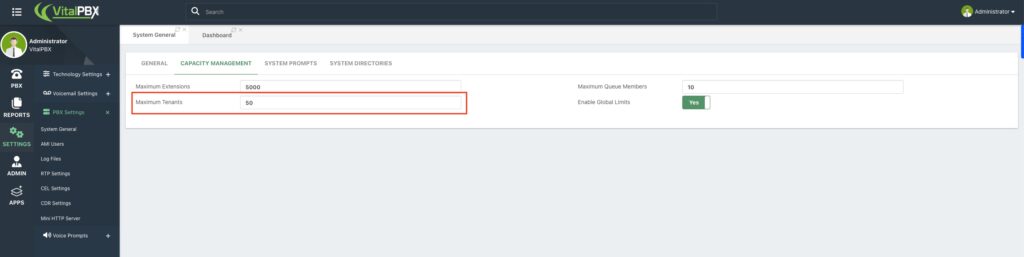 Note: VitalPBX actual performance will always depend on your server’s hardware capacity (CPU, RAM, and Storage). It is recommended to not exceed the 100 tenant quantity.